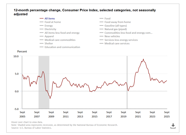 For example, the headline September CPI data showed prices increasing at 3% on a year-over-year basis.
