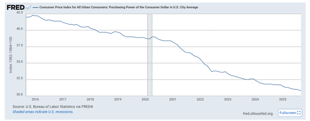 As you can see, it’s a relentless … uninterrupted … devaluation of your hard-earned savings.