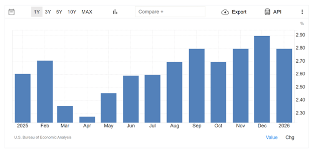 But based on the Fed’s favored measure — the Personal Consumption Expenditures (PCE) index — prices jumped 2.9% year over year in December and 2.8% year over year in January.