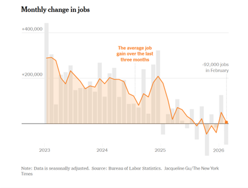 “Revisions to previous months bolstered the case that the job losses in February were consistent with a broader trend rather than a blip.