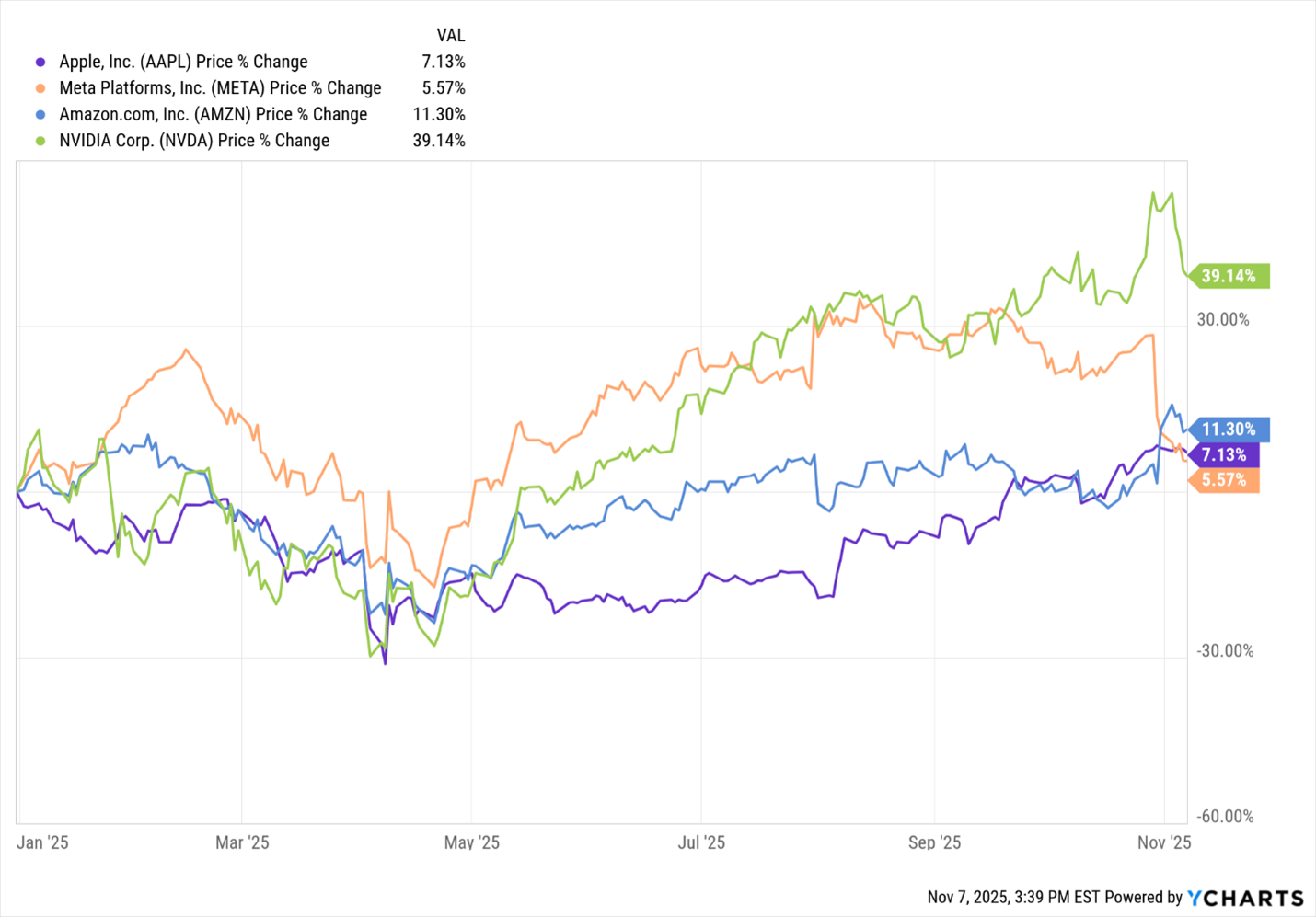 As for the biggest stock gainer this year among the Mag-7 brethren … none is more synonymous with AI than Nvidia (NVDA).