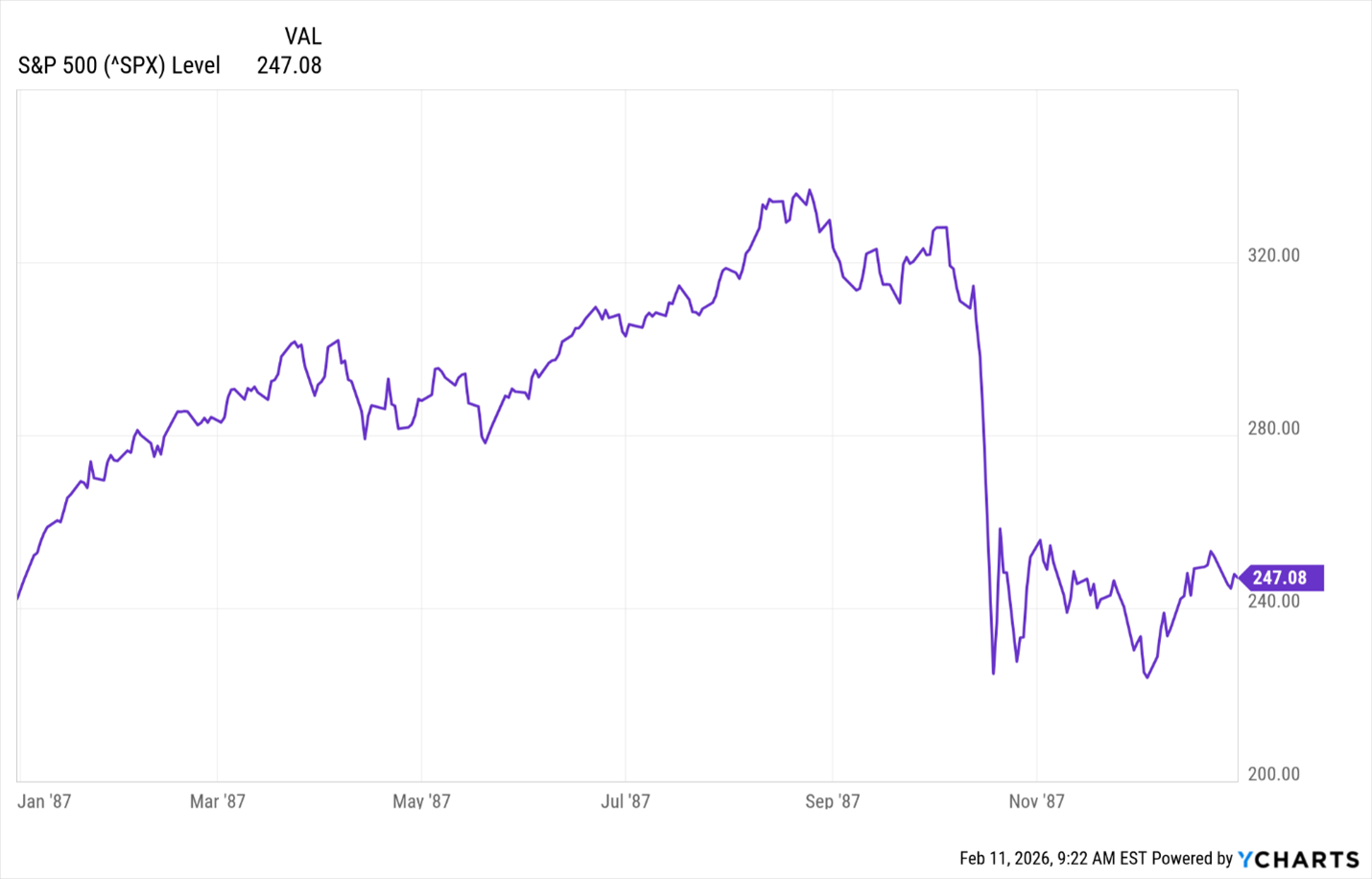 In October 1987, the stock market suffered a one-day 22% decline.