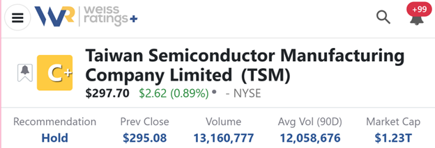 So, why does TSM only earn a “C+,” or “Hold,” rating in the Weiss universe?