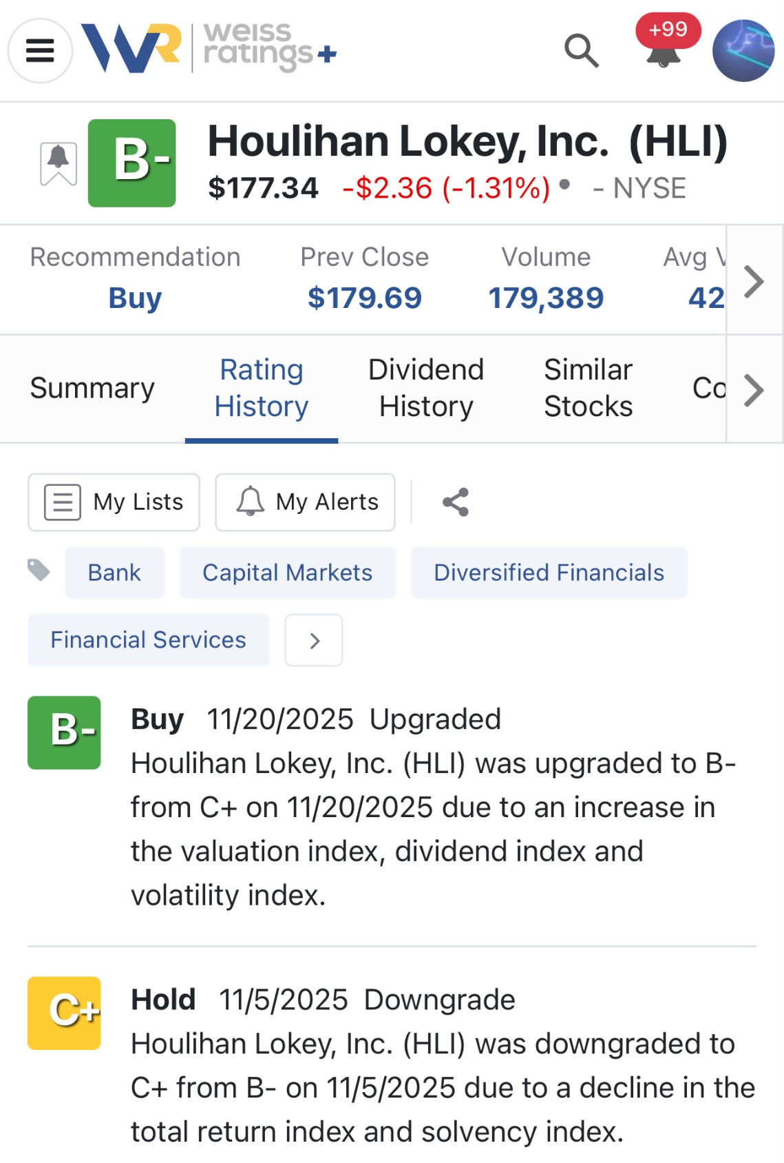As it turns out, HLI does rank pretty high among Weiss-rated investment banks.