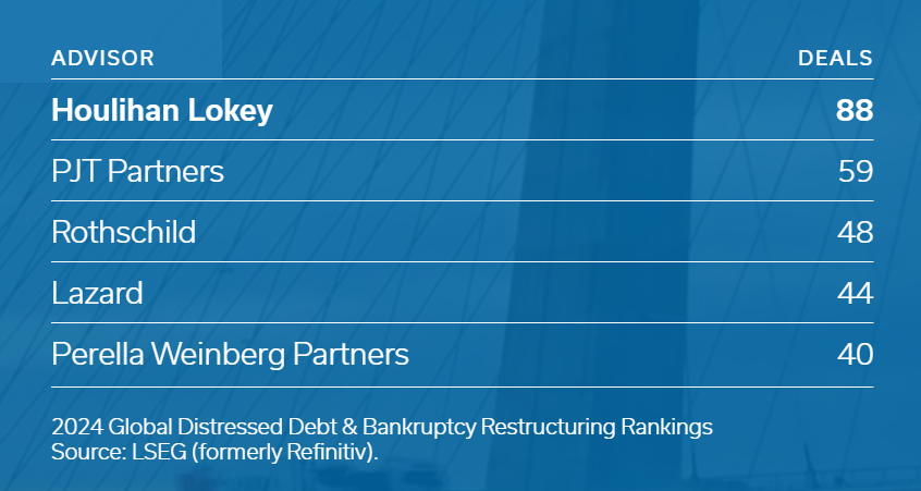 Houlihan doesn’t just work on new M&A deals. It also works with companies that are undergoing bankruptcy.