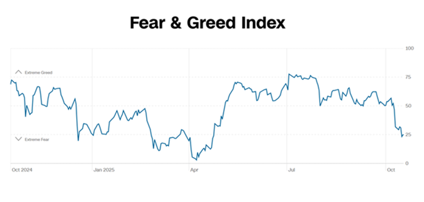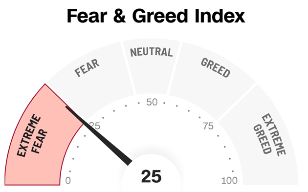 As you can see, CNN’s Fear & Greed Index just tipped into “Extreme Fear” territory briefly yesterday.