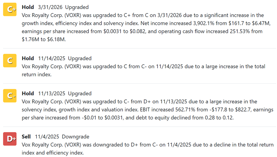 So, let’s look at why VOXR is starting to rise in our proprietary ratings.