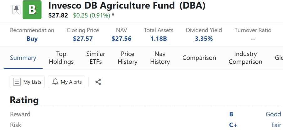 The easiest way to do that is with the Invesco DB Agriculture Fund (DBA).