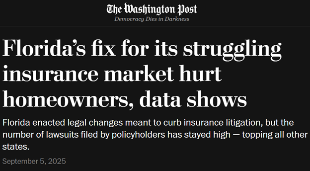 “Last month, three days after The Post reached out to industry representatives about the data compiled by Weiss, state regulators proposed a rule that would require insurance companies to submit more detailed information about their litigation and property insurance disputes than had previously been required — though some of those demands had already existed since 2021.”