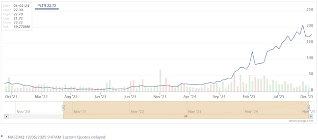 And yet … Palantir is up more than 150% in the last year, one of the main leaders of the AI and defense tech sector.