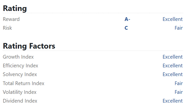Its Weiss “Buy” rating, which it’s held for two years, also offers some “calm” amid whatever Wall Street panic comes our way next.